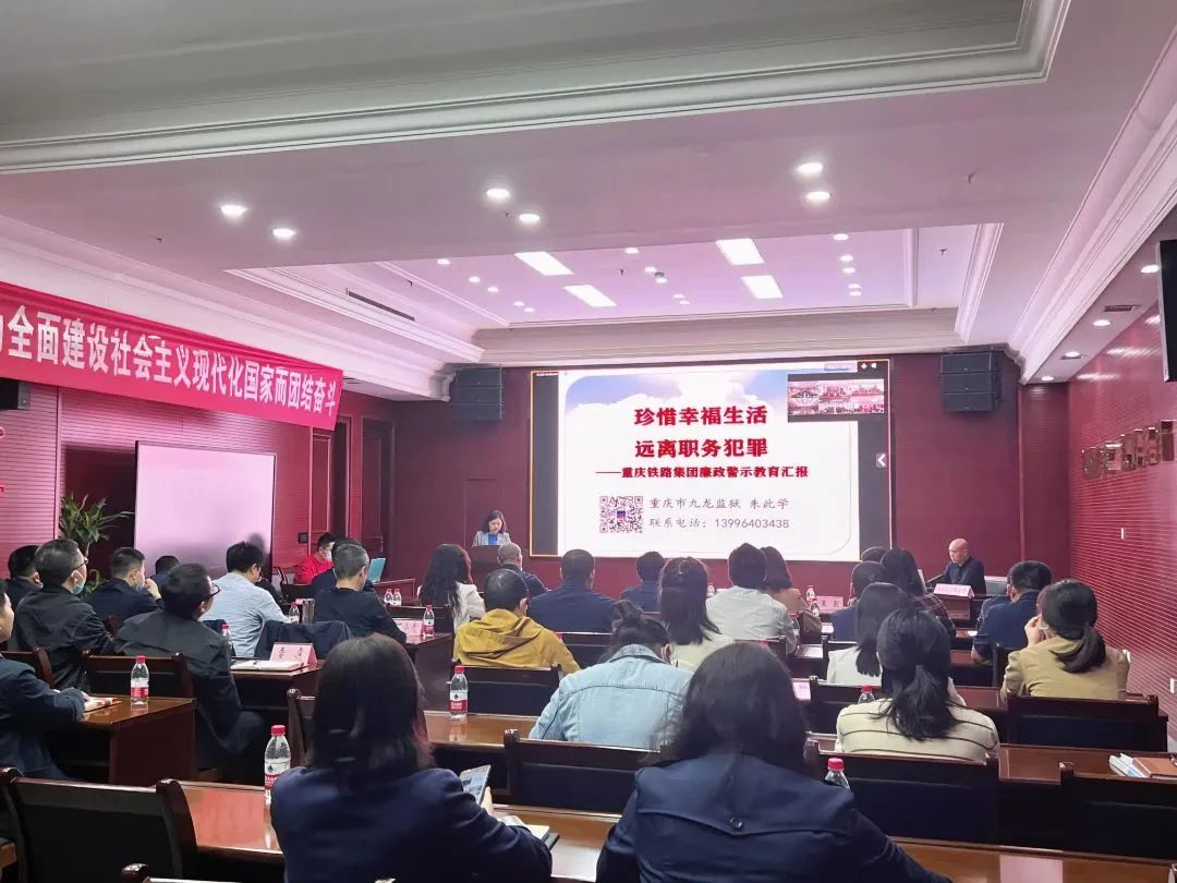 為深入開展學(xué)習(xí)貫徹習(xí)近平新時代中國特色社會主義思想主題教育,貫徹落實黨的二十大精神和二十屆中央紀(jì)委二次全會、六屆市紀(jì)委二次全會部署,持續(xù)推動全面從嚴(yán)治黨向縱深發(fā)展,5月11日,市鐵路集團(tuán)舉辦學(xué)習(xí)貫徹習(xí)近平新時代中國特色社會主義思想主題教育第二期讀書班黨風(fēng)廉政建設(shè)警示教育講座暨2023年第二季度黨風(fēng)廉政建設(shè)重點(diǎn)人員預(yù)防教育會,邀請重慶市九龍監(jiān)獄黨委副書記、政委朱此學(xué)作了題為《珍惜幸福生活 遠(yuǎn)離職務(wù)犯罪》的專題講座。集團(tuán)黨委領(lǐng)導(dǎo)班子、中層管理人員,所屬單位領(lǐng)導(dǎo)班子成員、中層管理人員,支部書記及黨員代表,集團(tuán)本部和所屬各單位黨風(fēng)廉政建設(shè)重點(diǎn)人員以及參加集團(tuán)紀(jì)檢干部隊伍教育整頓的全體紀(jì)檢人員、新進(jìn)黨員等共計300余人參加會議。會議由集團(tuán)黨委委員、監(jiān)事會主席陳靜主持。