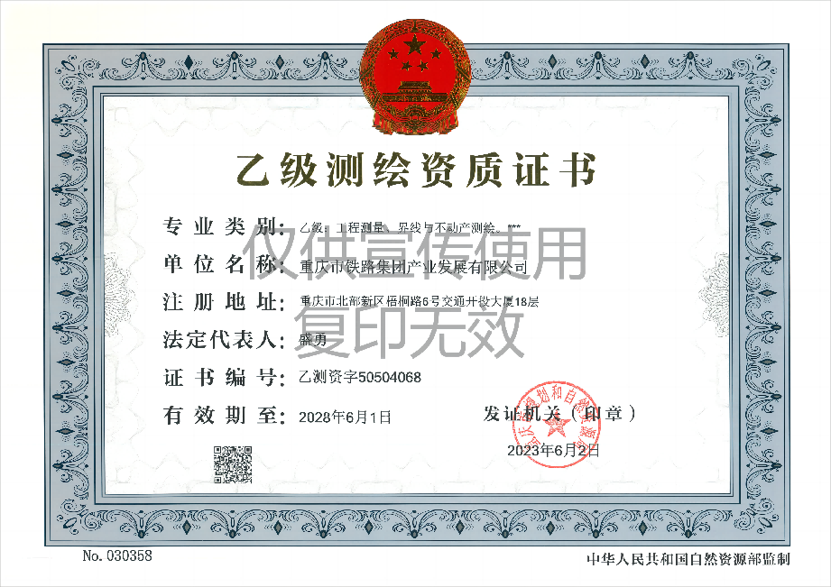 近日,市鐵路集團(tuán)產(chǎn)業(yè)公司成功取得由重慶市規(guī)劃和自然資源局頒發(fā)的,工程測(cè)量、界線與不動(dòng)產(chǎn)測(cè)繪專業(yè)“乙級(jí)測(cè)繪資質(zhì)”證書(shū)。