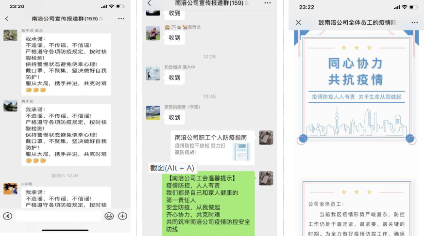 集團(tuán)工會聞令而動,第一時間吹響抗疫“集結(jié)號”,組織各級工會第一時間將上級的疫情防控部署要求傳達(dá)到每一位職工,引導(dǎo)職工正確理解各項(xiàng)防控政策和制度精神,號召廣大工會干部、勞模先進(jìn)和職工群眾全面行動起來,眾志成城,攜手戰(zhàn)“疫”,筑牢疫情防控安全防線。