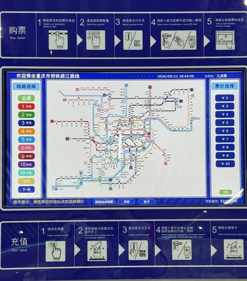 TVM,全稱叫做“自動售票機”。TVM最下方的第一個選項為“搜索站點購票”,輸入站點首字母即可快速鎖定目的站點,(例如:目的站點為“小什字”即輸入XSZ)。第二個選項為“充值”,選擇現(xiàn)金、微信、支付寶進行支付。第三個選項是“驗卡”,可以快速查詢卡內余額。主屏幕上還呈現(xiàn)有重慶市完整的軌道交通線路圖,可縮小放大,便于大家更好地規(guī)劃出行路線。